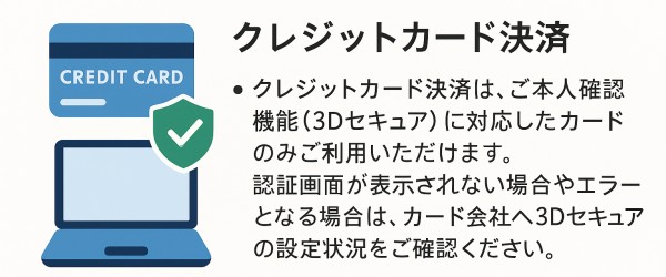当店のクレジットカード決済は、安全性向上のため「3Dセキュア(本人認証サービス)」に対応したクレジットカードのみご利用いただけます。