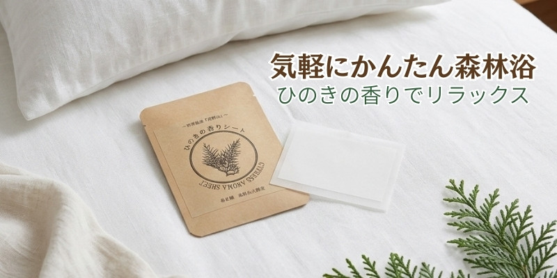 「ひのきの香りシート」は、日本の伝統的な香りであるひのきの香り成分をぎゅっと閉じ込めた、薄型タイプの芳香シートです。