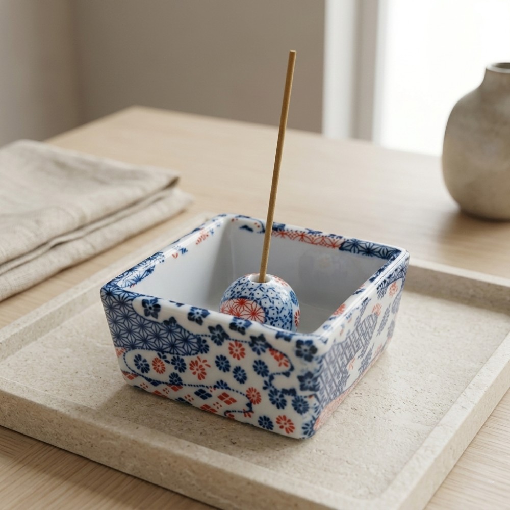 「美濃焼香立て 角型」は、スティック型・コーン型の両方に使える、美濃焼の陶器製香立てです。